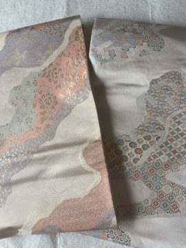 朗らかな大きな柄の帯と細やかな柄の帯 お持ちいただいた小物達から組み合わせます