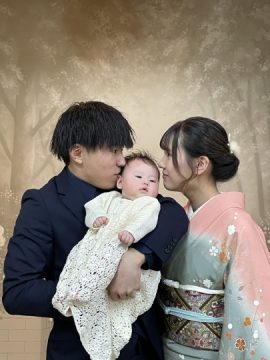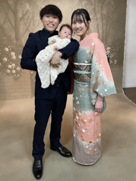 着物と共に受け継がれる瞬間に感動です。ひいおばあちゃんも感動の写真ですね〜たくさんの愛情ですくすく育ってね