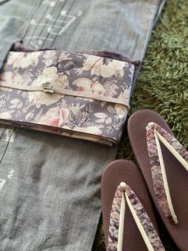 手持ちのコーディネートを足元まで完成させる オーダーの《大人の色草履》色のご提案もしますので気になったらお問い合わせくださいね。