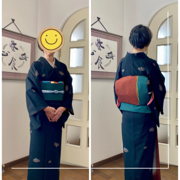 お家の着物が気になって、処分するのも心許ないとレッスンをスタートしてくれた同級生のお二人。箪笥に風が通って色々出して組み合わせてとても素敵な着姿になっていると思います