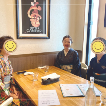 《レッスンの生徒さんの思いに合わせて》箪笥の着物を着ようと思ってスタートした生徒さんたちとのランチ、私も受け継いだ大切な親の大島でコーディネートしました。