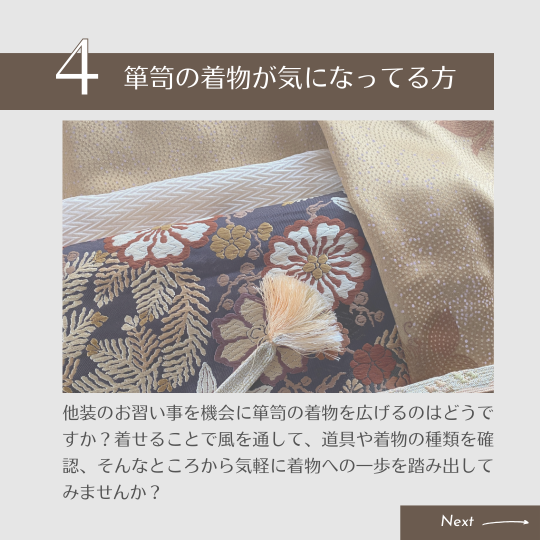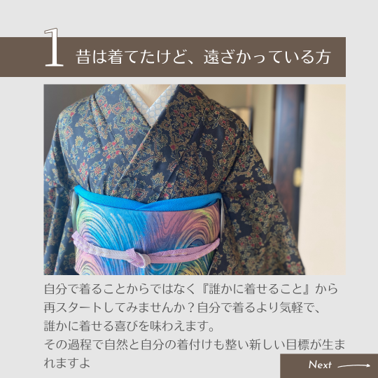 秋からスタートして、年末お正月は着物で!これも素敵な目標!でもなかなか自分が着るのにはハードルが高いな‥という方にむけて