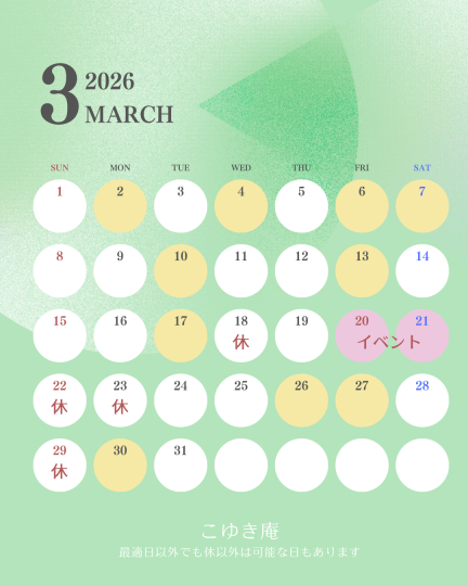 色が変わっている日がレッスン最適日です。お休み以外の最適日意外は可能な日もありますので初めてのスタートお問い合わせはお気軽にお待ちしています。