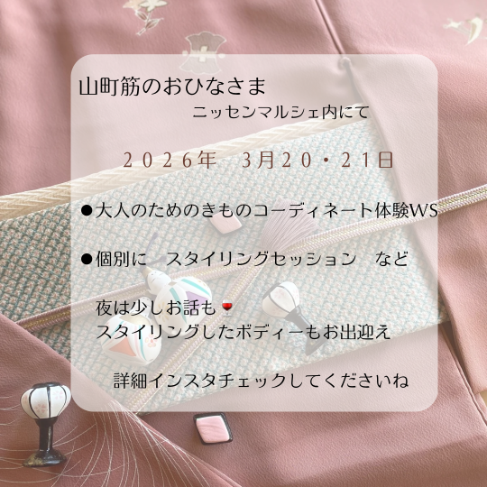 色合わせや、素材のお話をしています。ぜひ春を見つけにサイト内 《キモノ読ミモノ》より読んでくださいね